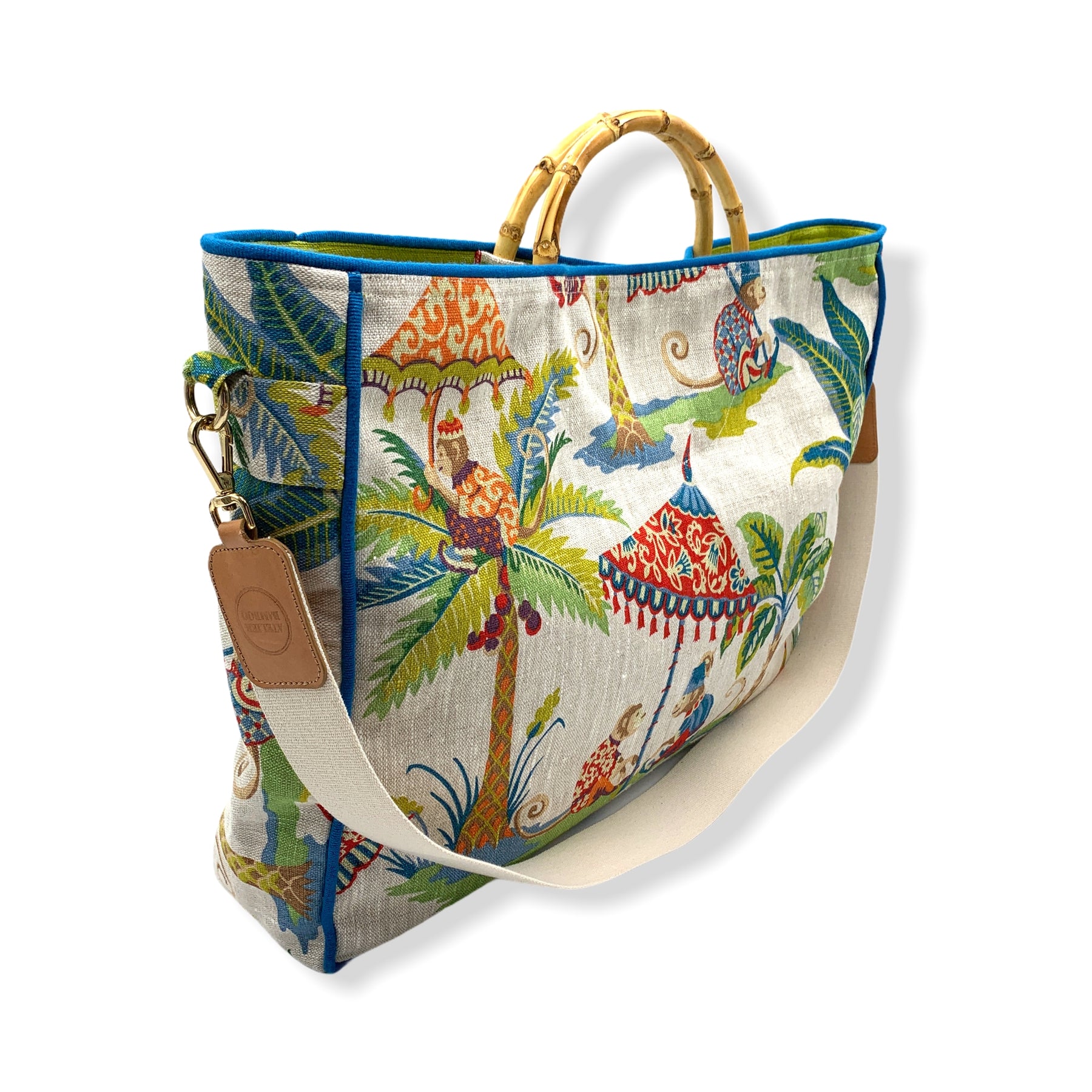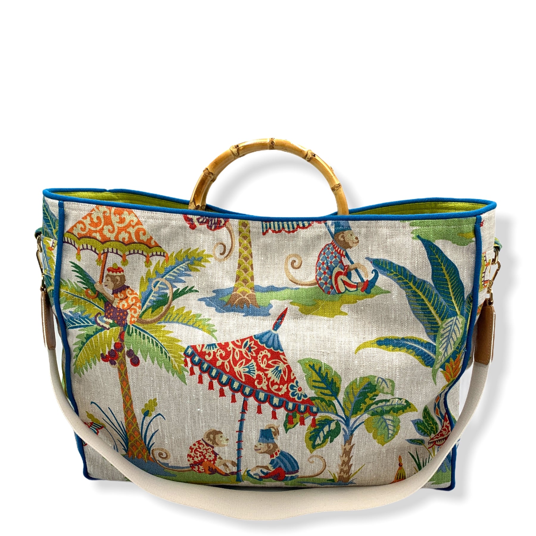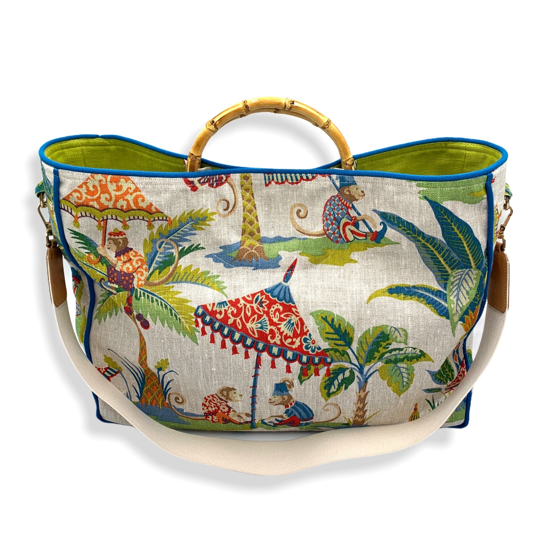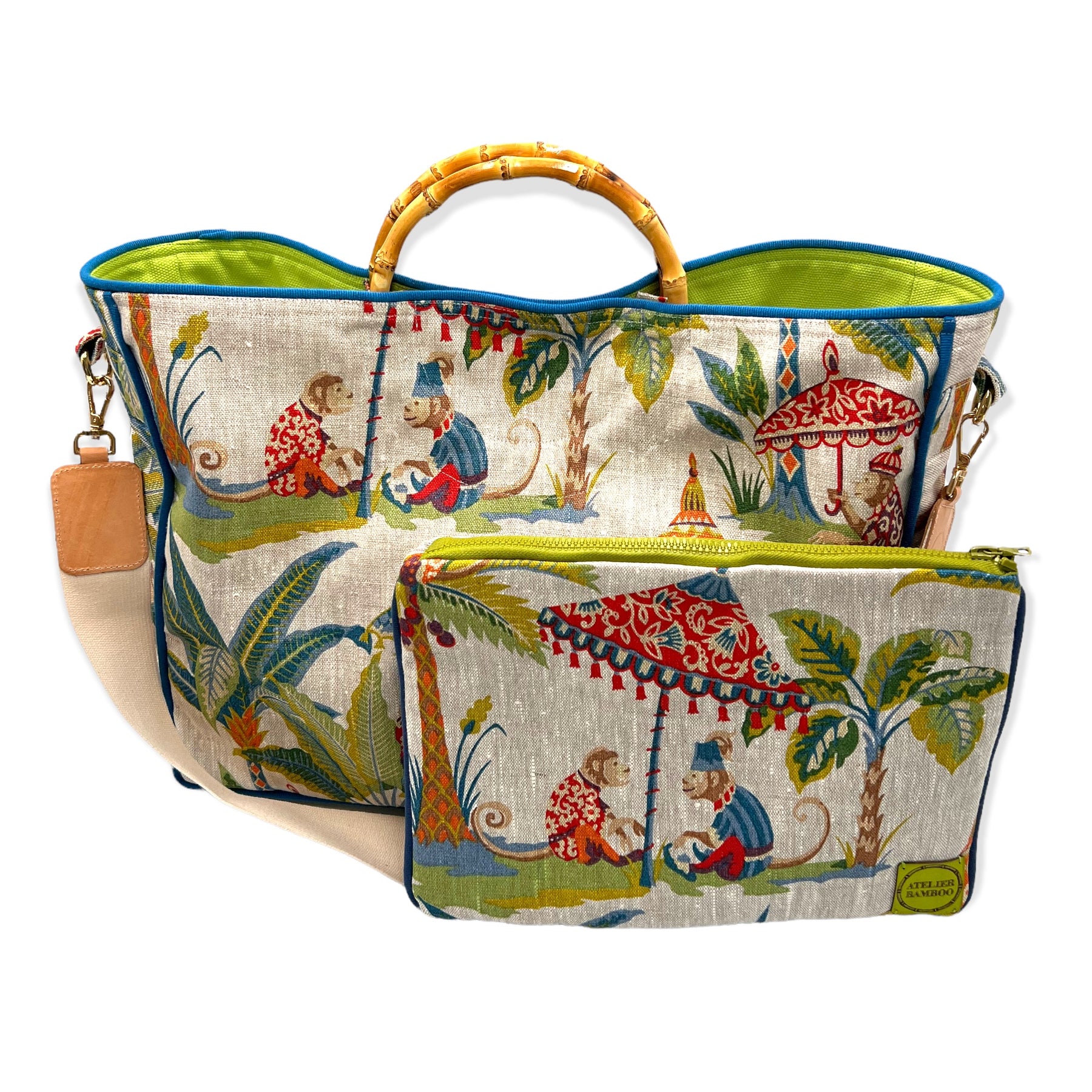 These monkeys got it all started, the first Atelier Bamboo bag being made out of this gorgeous Chinoiserie fabric. Hence its name "Monkey Business".