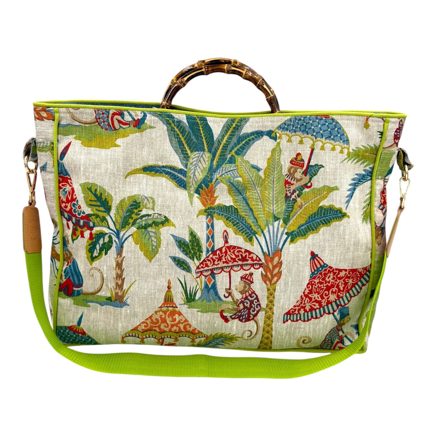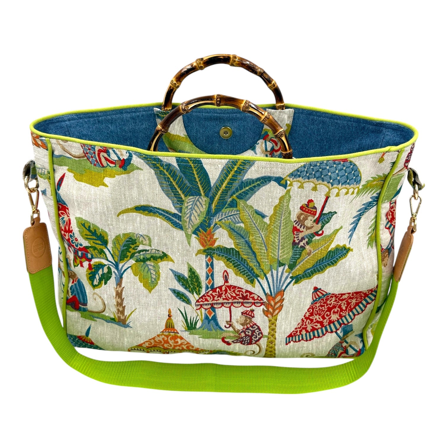These monkeys got it all started, the first Atelier Bamboo bag being made out of this gorgeous Chinoiserie fabric. Hence its name "Monkey Business".